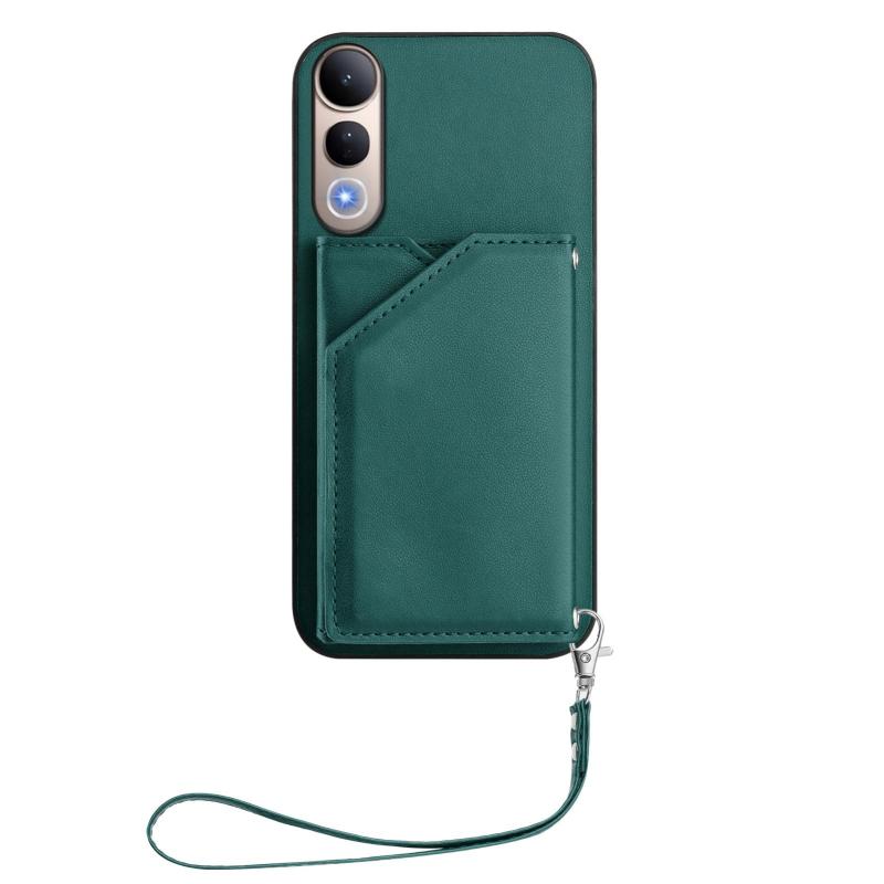 For vivo V50 Lite 4G Skin Feel Four Card Slots Phone Case with Wrist Strap(Green)