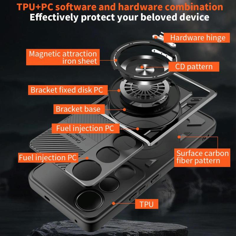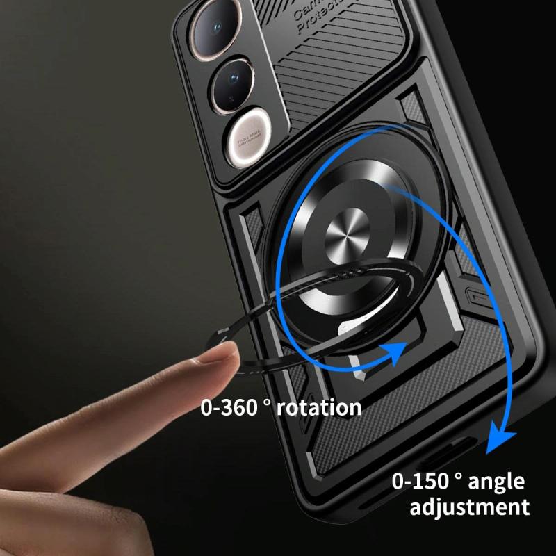 6. Περιστροφή 360 Μοιρών: Η ενσωματωμένη βάση στήριξης σας προσφέρει την ιδανική γωνία θέασης τόσο για οριζόντιο όσο και για κάθετο προσανατολισμό. Όταν είναι διπλωμένη, ευθυγραμμίζεται απρόσκοπτα με την πλάτη της θήκης, διατηρώντας ένα λεπτό προφίλ για εύκολη ολίσθηση στην τσέπη.