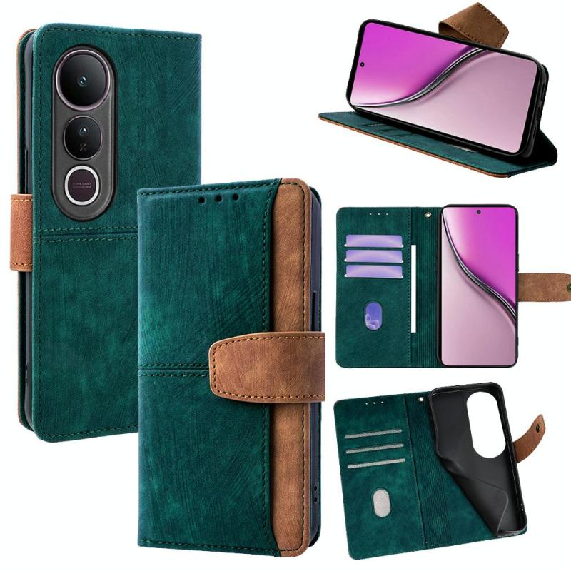 For vivo V50 Lite 5G Color Stitching Skin Feel Leather RFID Blocking Phone Case(Green)