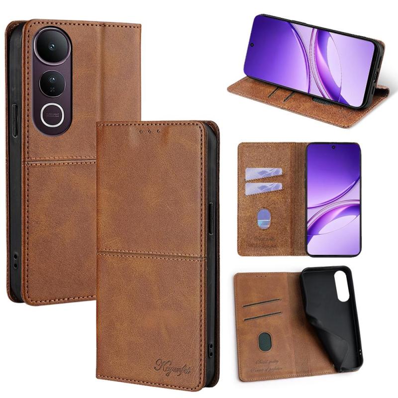 For vivo V50 Lite 5G Cow Texture Magnetic Leather Phone Case(Light Brown)