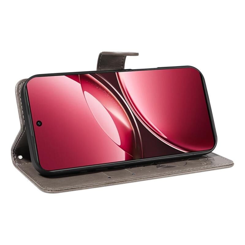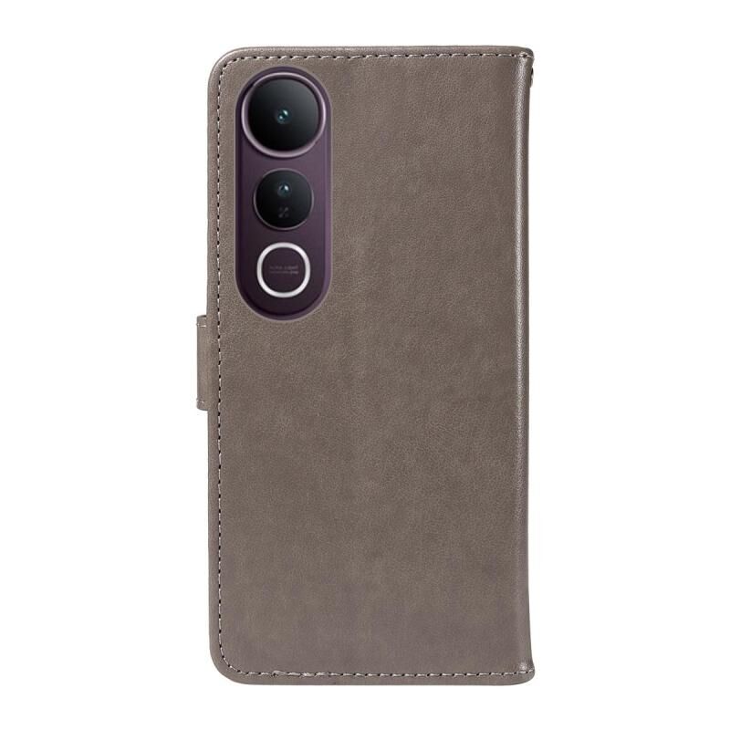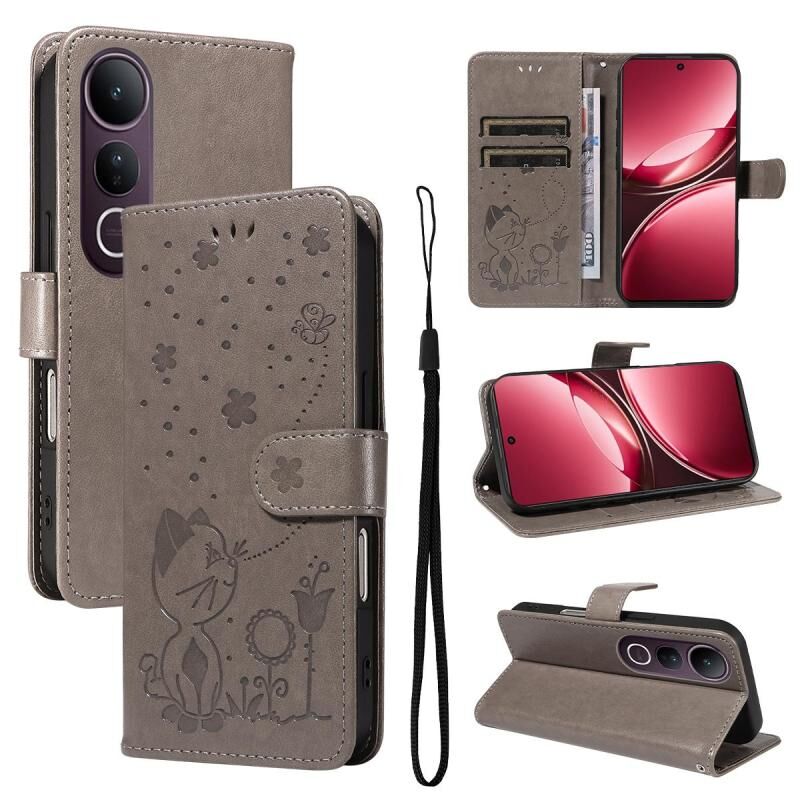 Θήκη τηλεφώνου από δέρμα με ανάγλυφο σχέδιο γάτας και μέλισσας για vivo V50 Lite 5G (Γκρι)