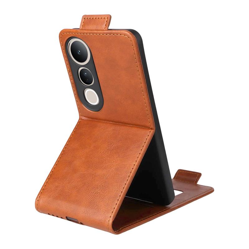 For vivo V50 Lite 5G Global Magnetic Vertical Flip Leather Phone Case with Buckle(Brown)
