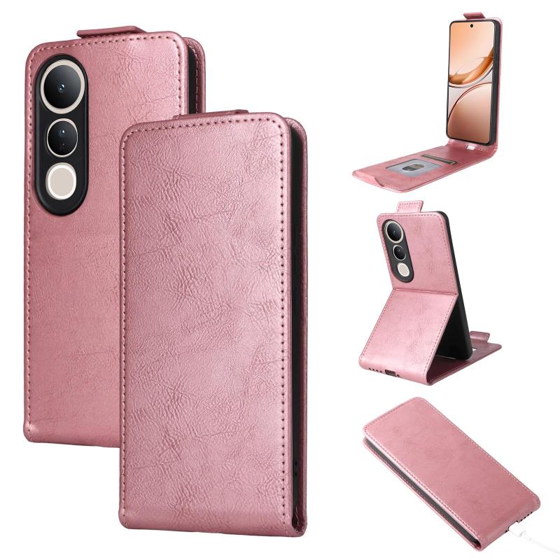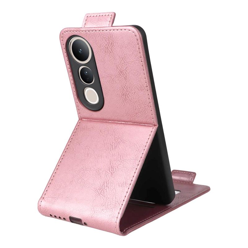 For vivo V50 Lite 5G Global Magnetic Vertical Flip Leather Phone Case with Buckle(Rose Gold)