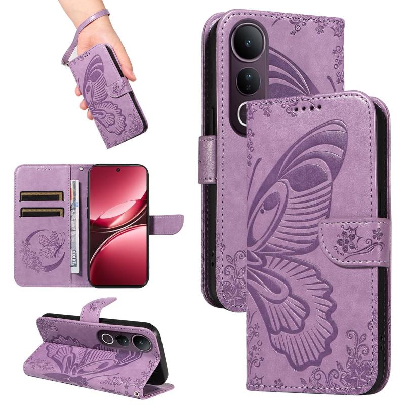 For vivo V50 Lite 5G Global Swallowtail Butterfly Embossed Leather Phone Case(Purple)