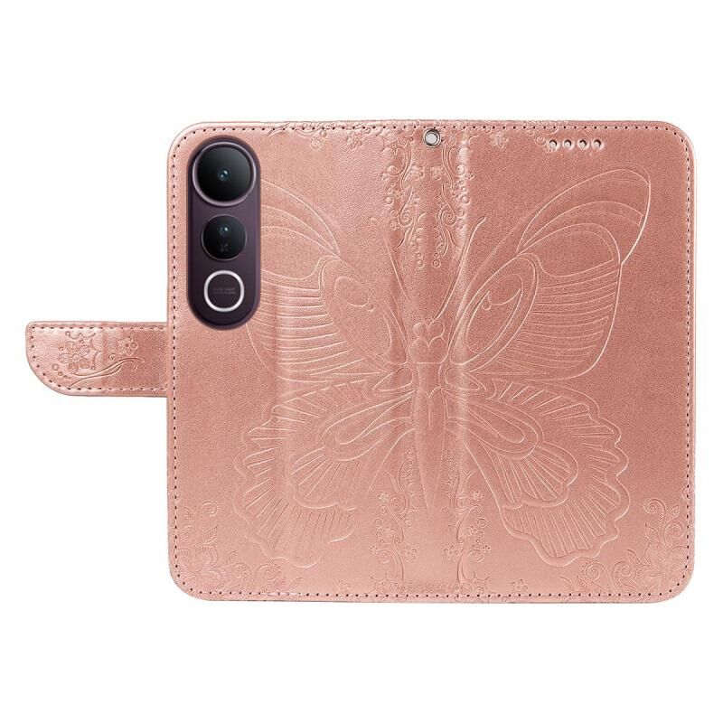 Θήκη τηλεφώνου από δέρμα με ανάγλυφο σχέδιο πεταλούδας Swallowtail για vivo V50 Lite 5G (Μπλε)
