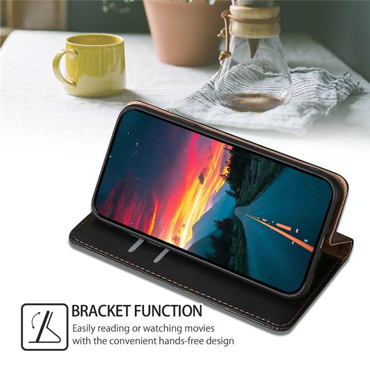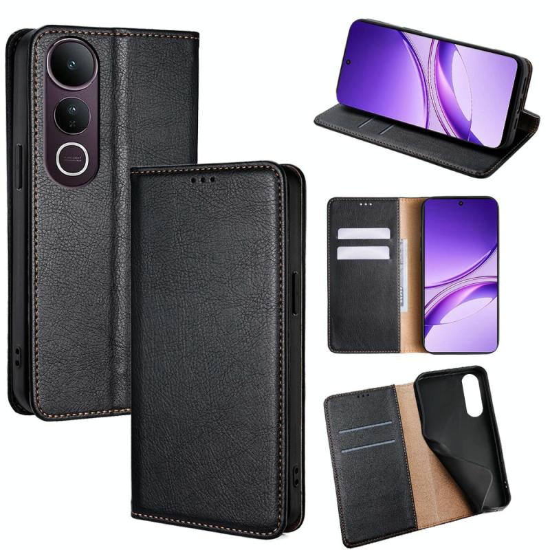 Θήκη τηλεφώνου από μαγνητικό δέρμα με γυαλιστερό λάδι και συμπαγές χρώμα για vivo V50 Lite 5G (Μαύρο)