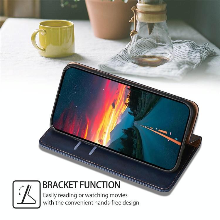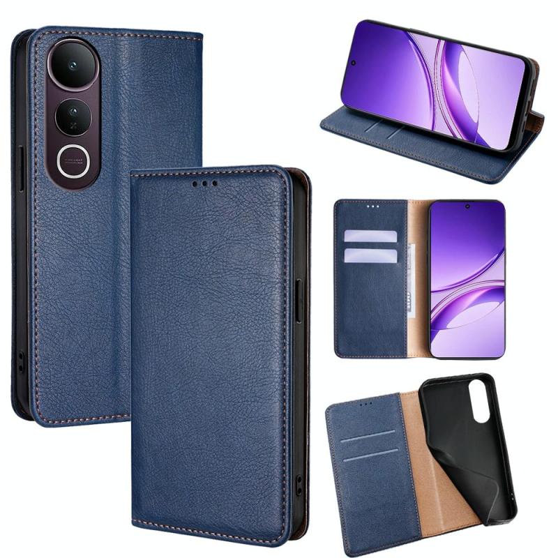 Θήκη τηλεφώνου από μαγνητικό δέρμα με γυαλιστερό λάδι και συμπαγές χρώμα για vivo V50 Lite 5G (Μπλε)