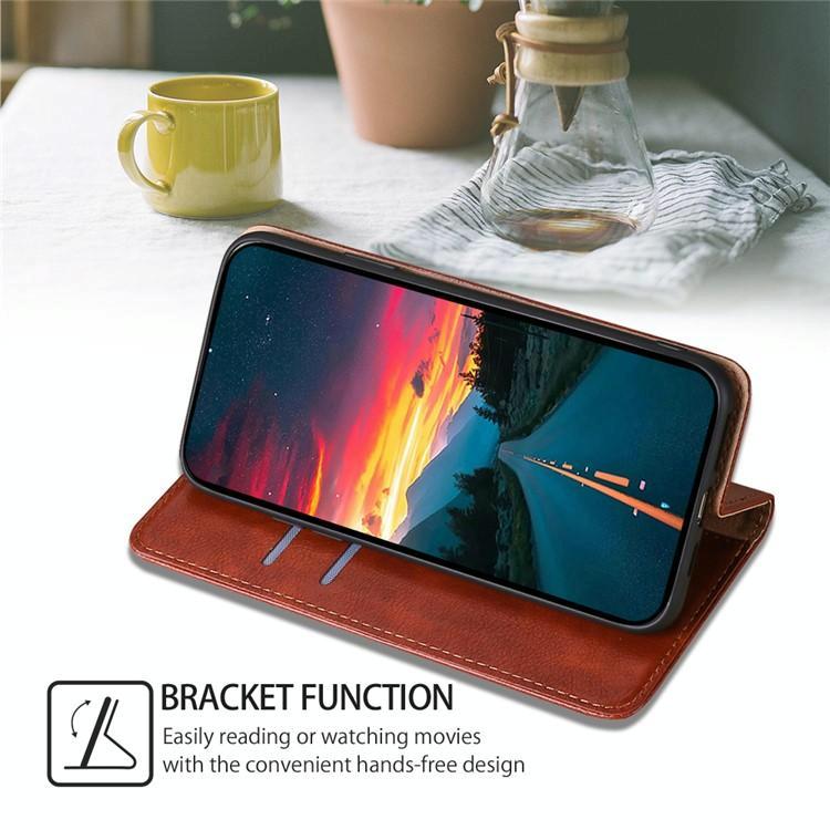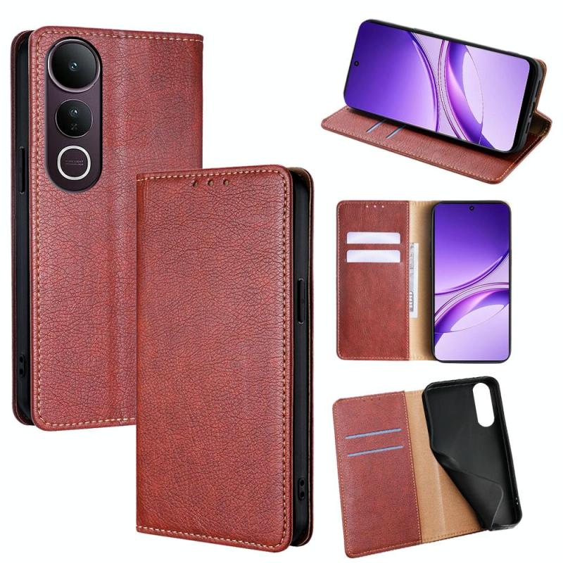Θήκη τηλεφώνου από μαγνητικό δέρμα με γυαλιστερό λάδι και συμπαγές χρώμα για vivo V50 Lite 5G (Καφέ)