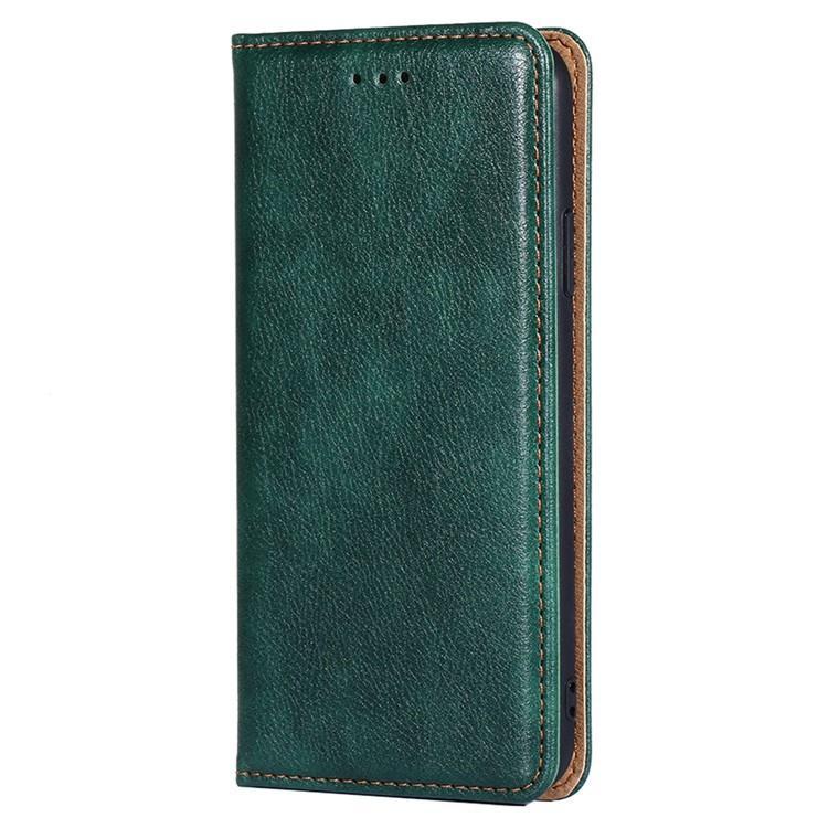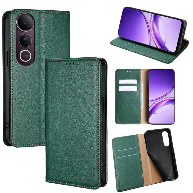Θήκη τηλεφώνου από μαγνητικό δέρμα με γυαλιστερό λάδι και συμπαγές χρώμα για vivo V50 Lite 5G (πράσινο)