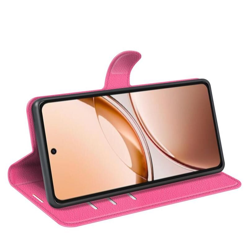 Θήκη τηλεφώνου από δέρμα με οριζόντιο άνοιγμα για vivo V50 Lite 5G με υφή Λίτσι και βάση στήριξης (Μαύρο)
