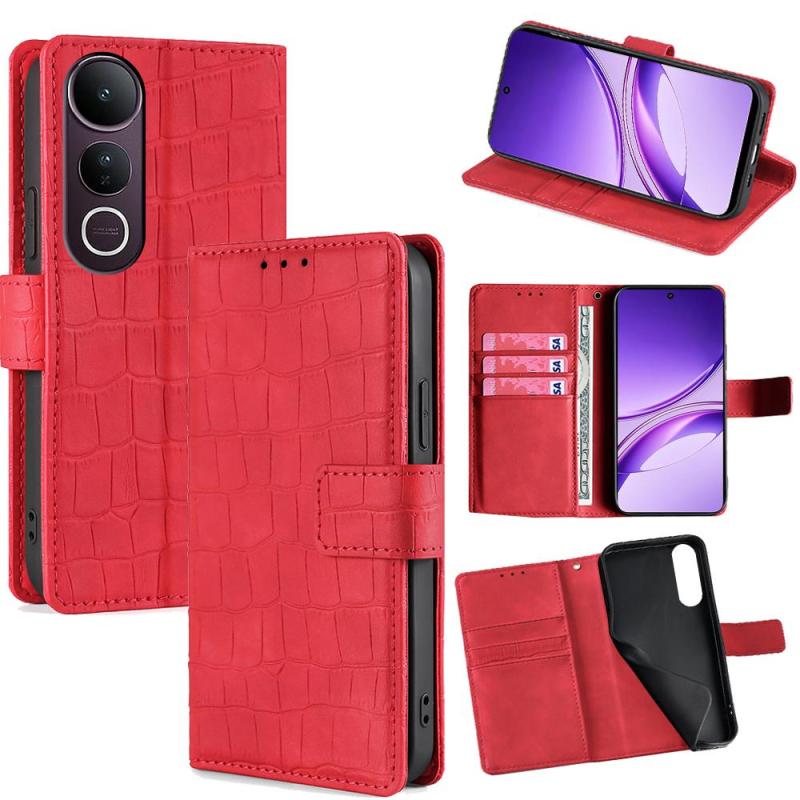 For vivo V50 Lite 5G Skin Feel Crocodile Magnetic Clasp Leather Phone Case(Red)