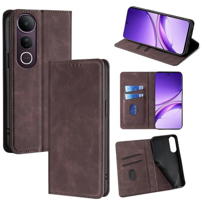 Θήκη τηλεφώνου από δέρμα με μαγνητική αίσθηση για vivo V50 Lite 5G (Σκούρο Καφέ)