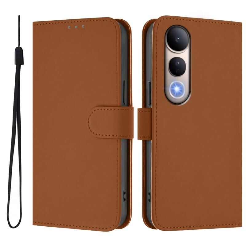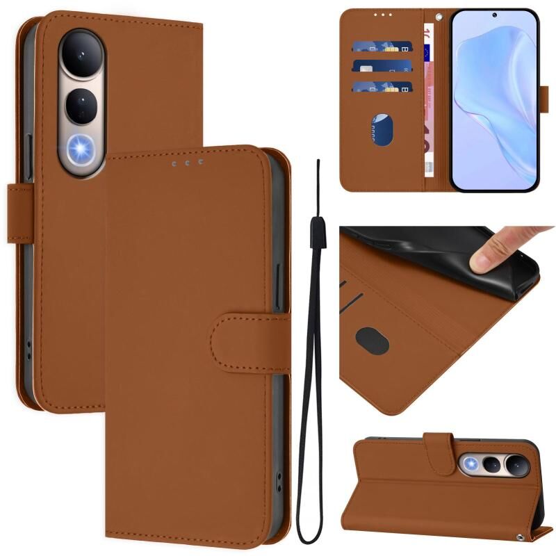 Θήκη τηλεφώνου από δέρμα με αίσθηση αφής, συμπαγούς χρώματος για vivo V50 Lite 5G με κορδόνι (Καφέ)