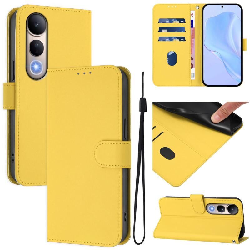 Θήκη τηλεφώνου από δέρμα με αίσθηση αφής, συμπαγούς χρώματος για vivo V50 Lite 5G με κορδόνι (Κιτρινό λεμονί)