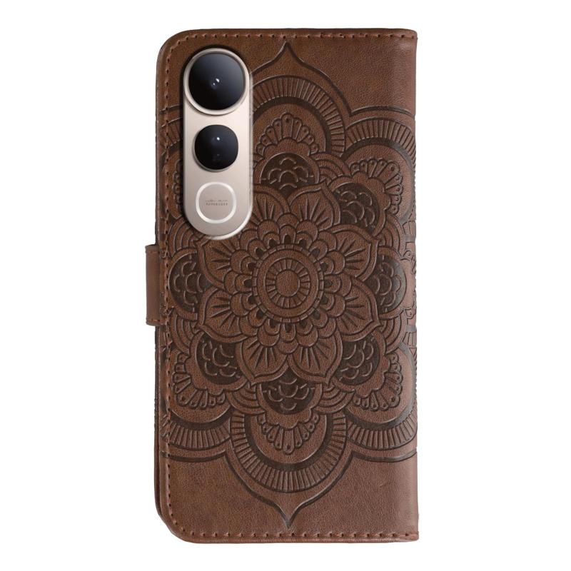 For vivo V50 Lite 5G Sun Mandala Embossing Pattern Phone Leather Case(Brown)