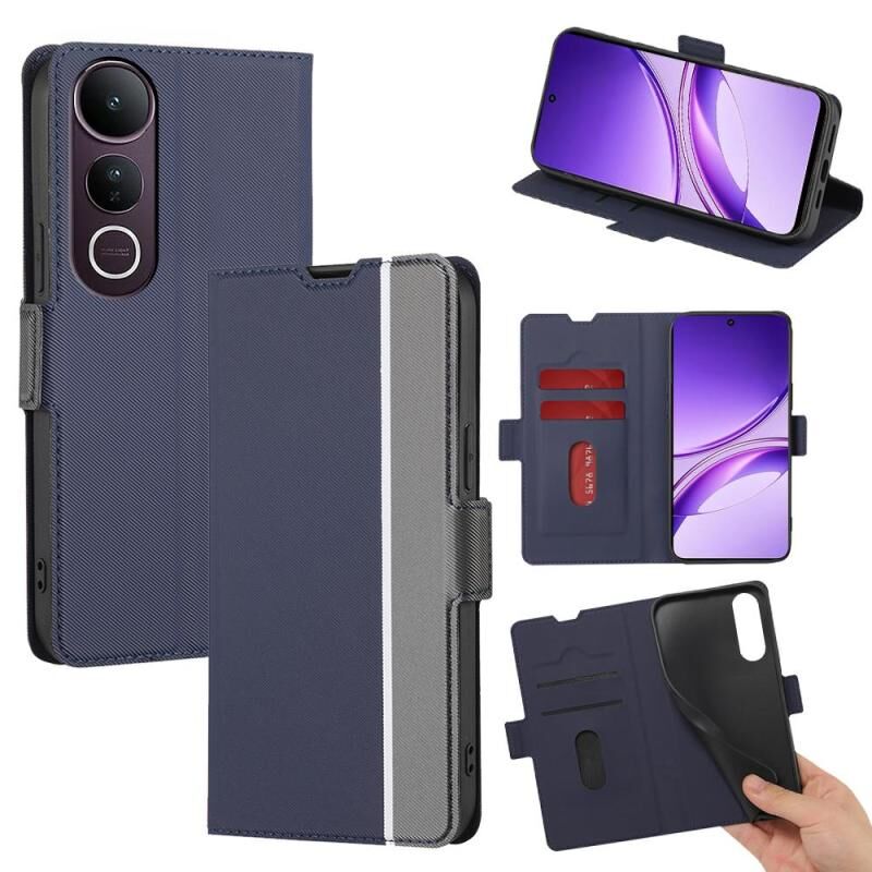 Θήκη τηλεφώνου από δέρμα με υφή twill για vivo V50 Lite 5G, με πλευρικά κουμπιά (Μαύρο)