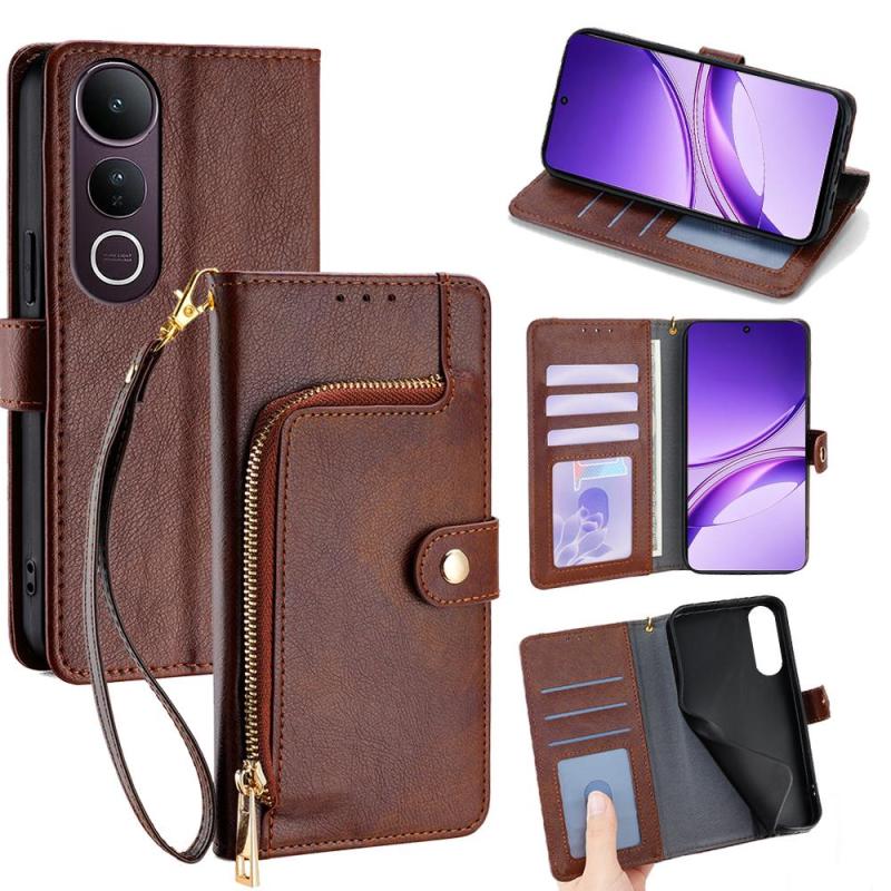 For vivo V50 Lite 5G Zipper Bag Leather Phone Case(Brown)