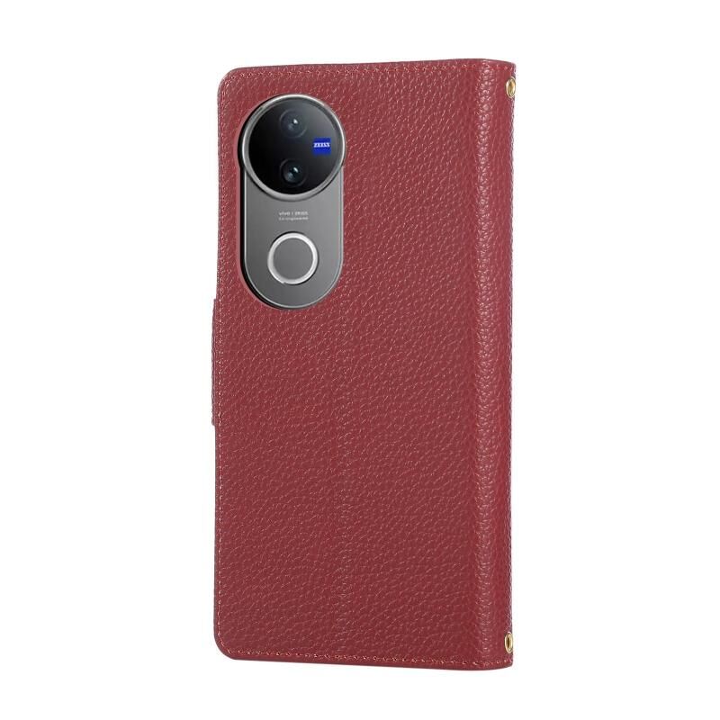 Θήκη τηλεφώνου vivo V50 με στρογγυλή αγκράφα, φερμουάρ, δερμάτινη και λουρί crossbody (Ροζ)