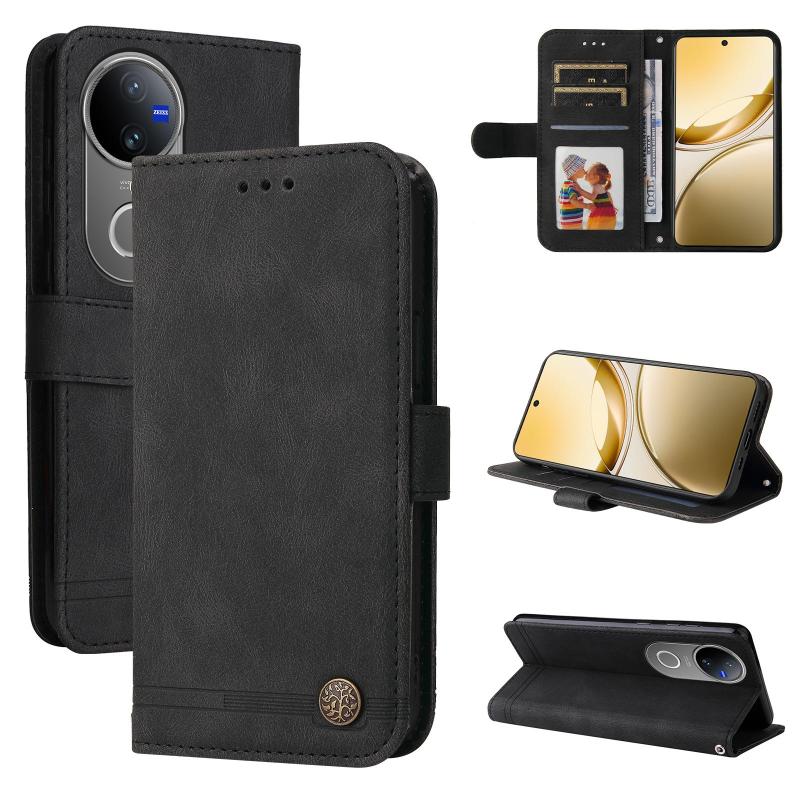 For vivo V50 Skin Feel Life Tree Metal Button Leather Phone Case(Black)