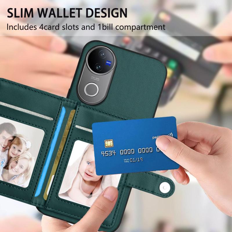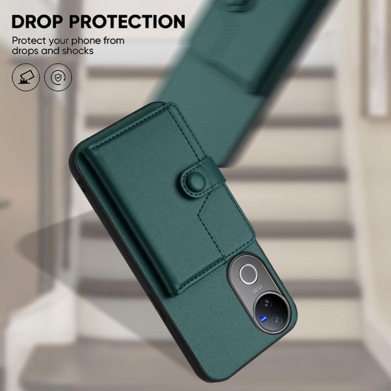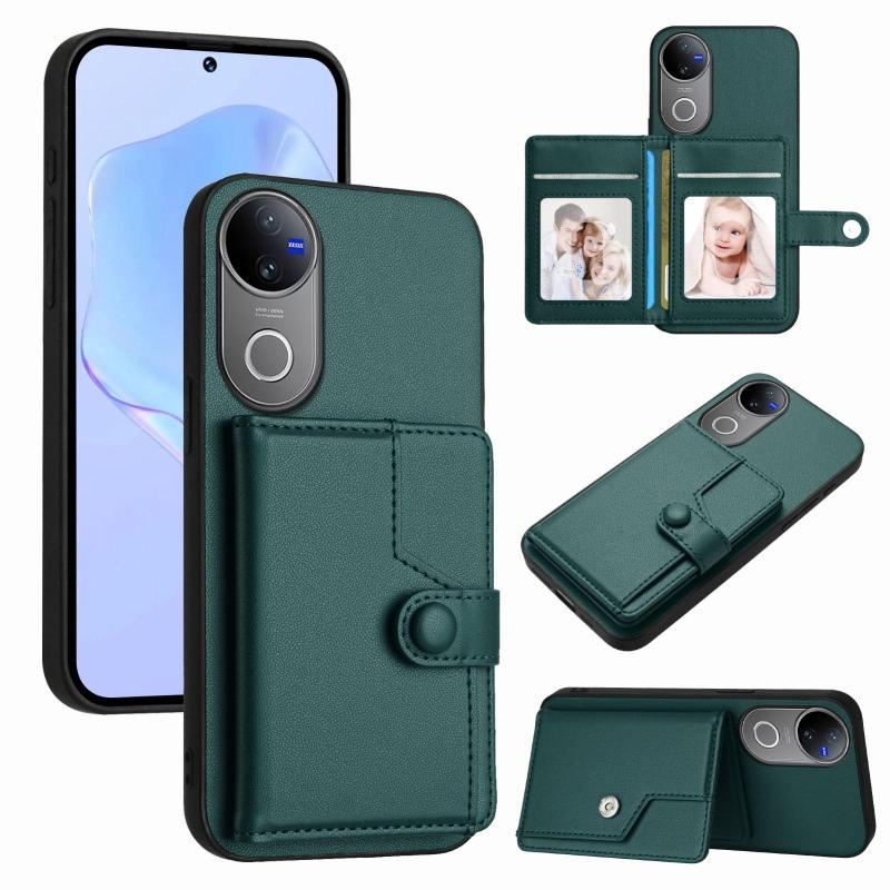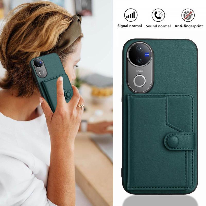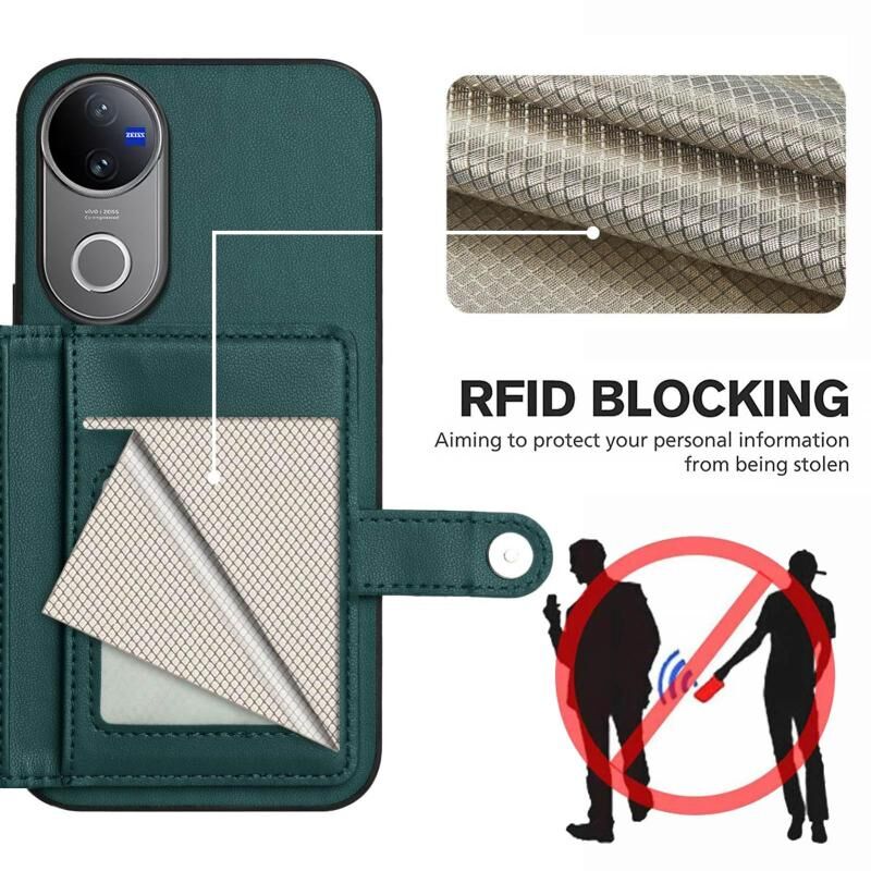 For vivo V50 / V50e Button Card Bag RFID Anti-theft Phone Case(Green)