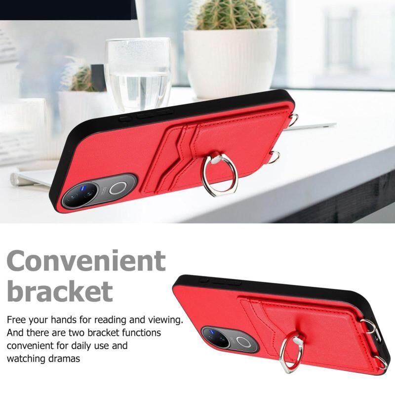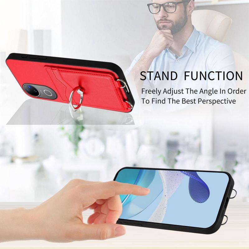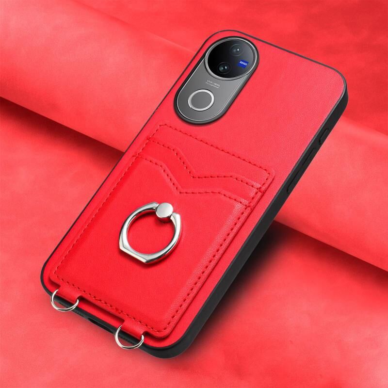 Θήκη τηλεφώνου με δακτύλιο και κάρτα για vivo V50 / V50e R20 (Κόκκινο)