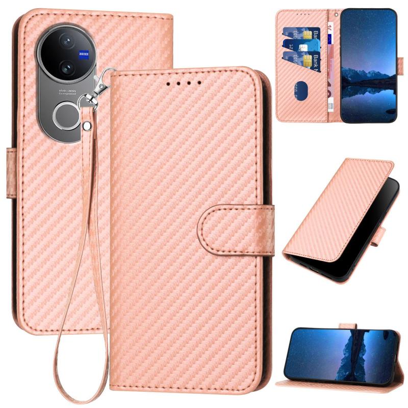 Θήκη τηλεφώνου για vivo V50 YX0070 από δέρμα με αγκράφα από ανθρακονήματα και κορδόνι (ρόζ)