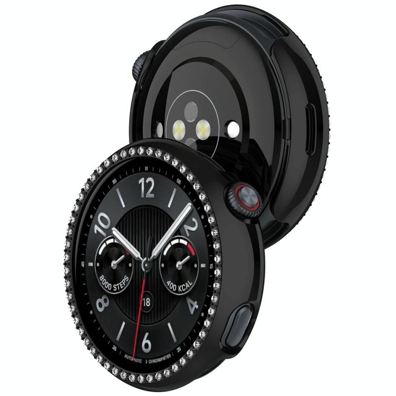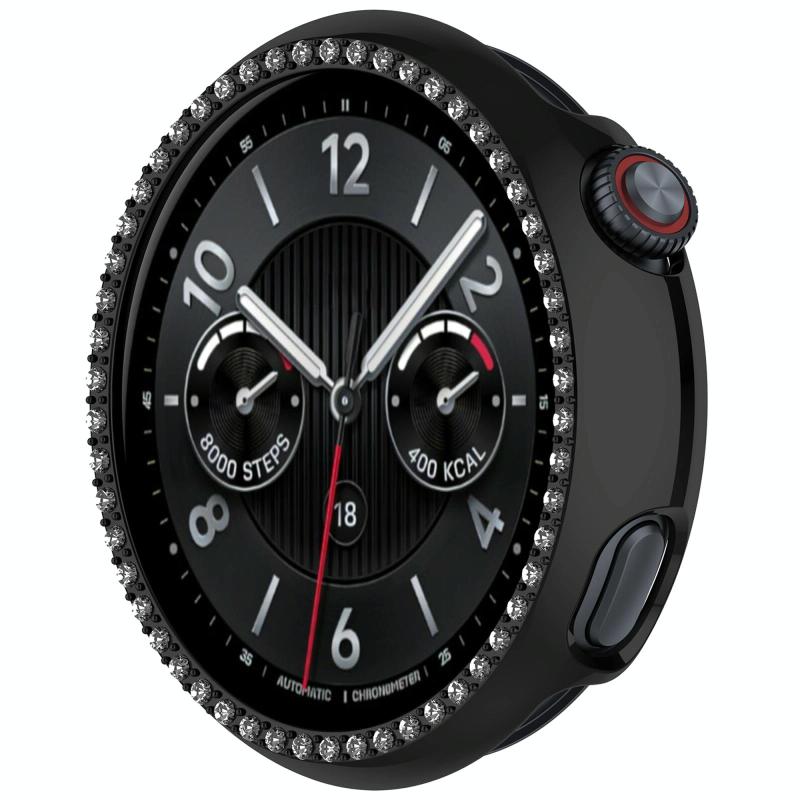 For vivo Watch 5 Single Row Diamond Half Coverage Hollow PC Watch Protective Case(Black)