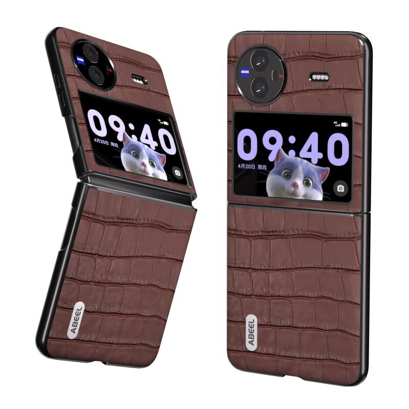 Θήκη τηλεφώνου από γνήσιο δέρμα με υφή κροκόδειλου για vivo X Flip ABEEL (Μαύρο)