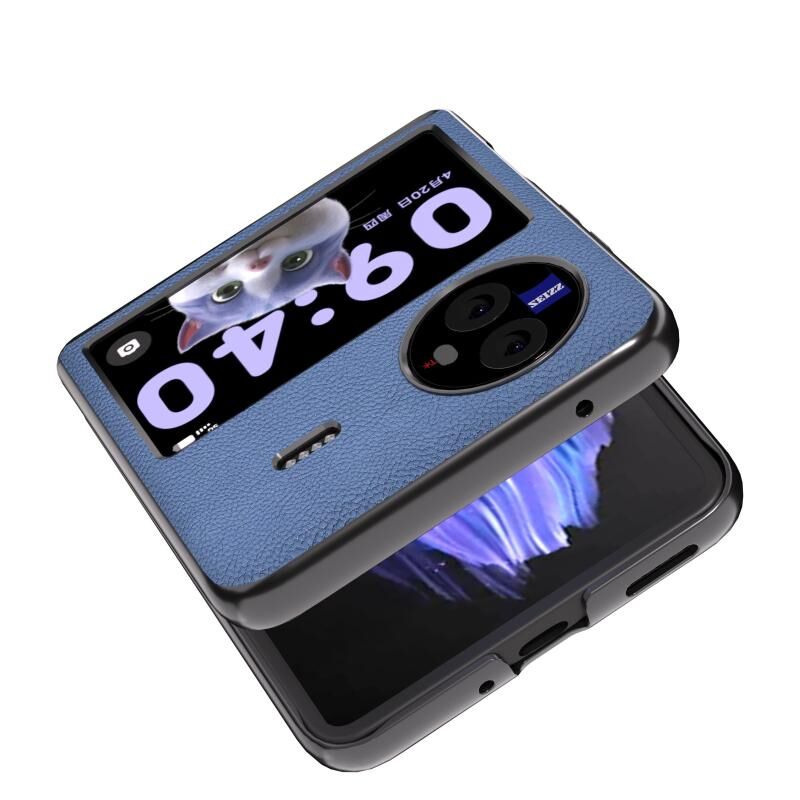 Θήκη τηλεφώνου από γνήσιο δέρμα + PC με υφή λυτσί για vivo X Flip (Μπλε)