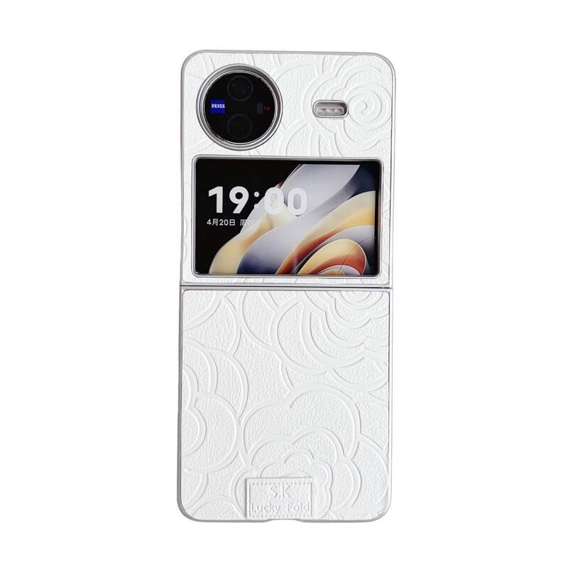 Θήκη τηλεφώνου DIY από πολυανθρακικό υλικό με υφασμάτινο σχέδιο καρό καμέλια για vivo X Flip (Λευκό)