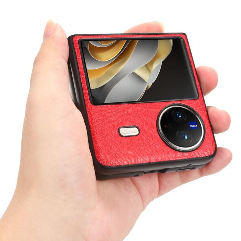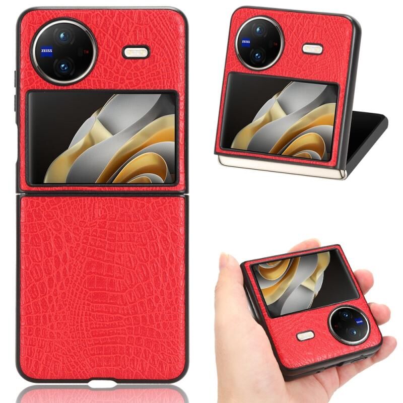 Θήκη τηλεφώνου για vivo X Flip με υφή κροκόδειλου από PU (Λευκό)