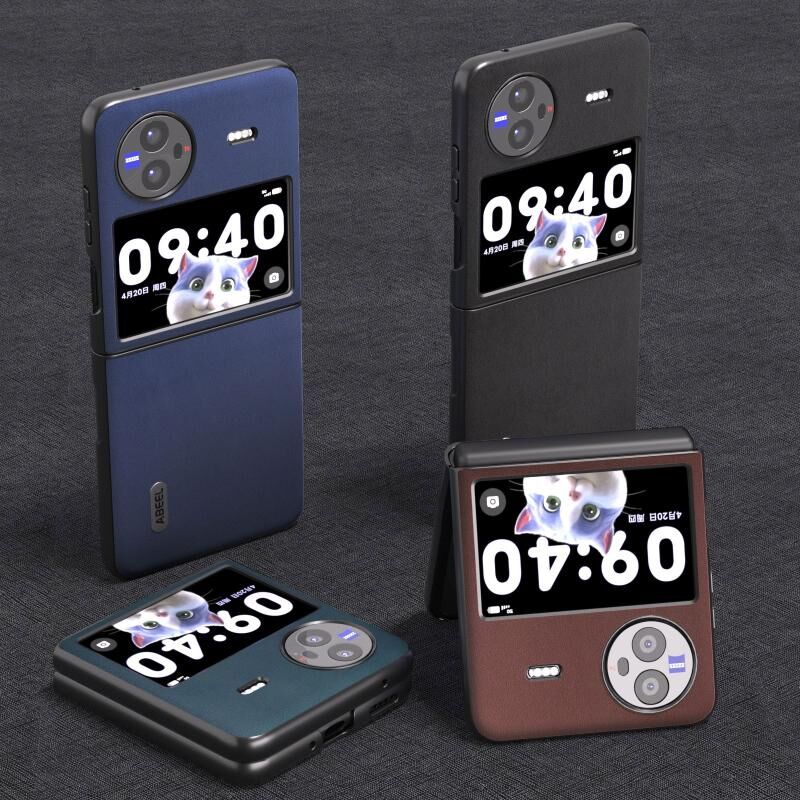 Θήκη τηλεφώνου από γνήσιο δέρμα για vivo X Flip, σειρά Xiaoya (Μαύρο)