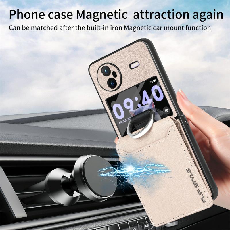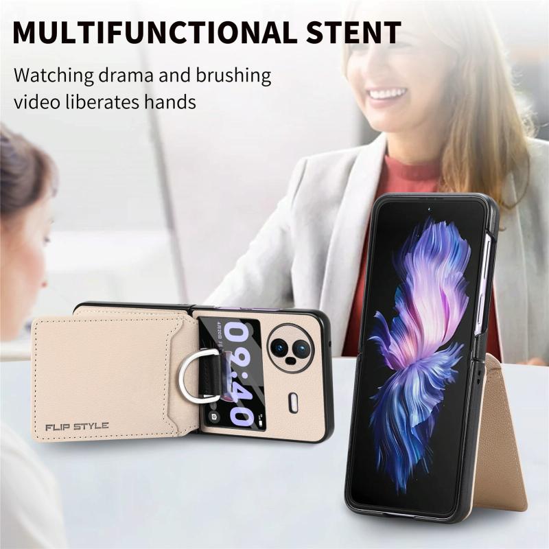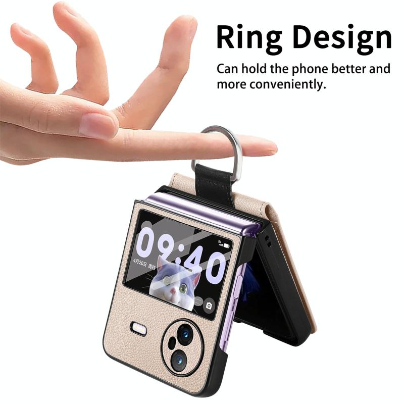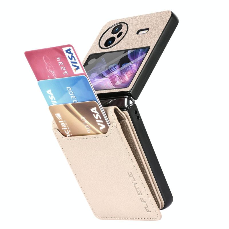 Θήκη κινητού τηλεφώνου με αντικραδασμική προστασία για vivo X Flip με υφή Litchi, κάρτα και δακτύλιο στήριξης / μεμβράνη (Μπεζ)
