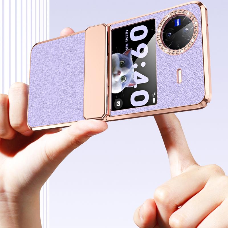 Θήκη για vivo X Flip με Επικάλυψη από Απλό Δέρμα, Πτυσσόμενη, με Μεντεσέ (Μωβ)