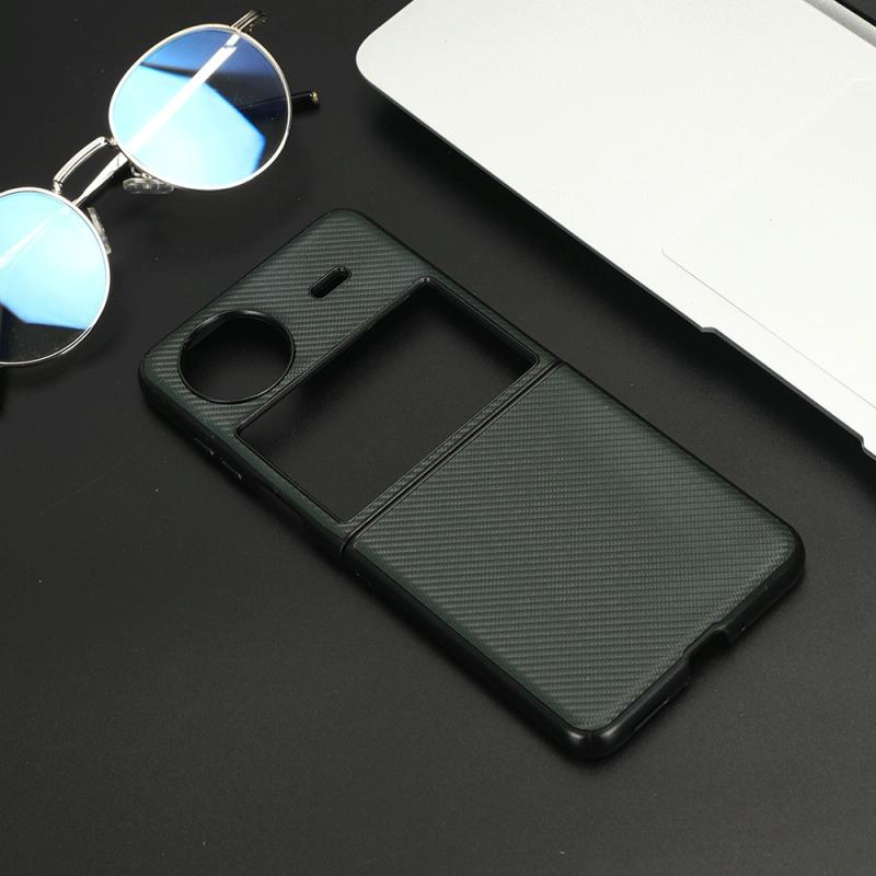 Θήκη τηλεφώνου για vivo X Flip από δερματίνη PU και πολυανθρακικό (PC) (Μαύρο)