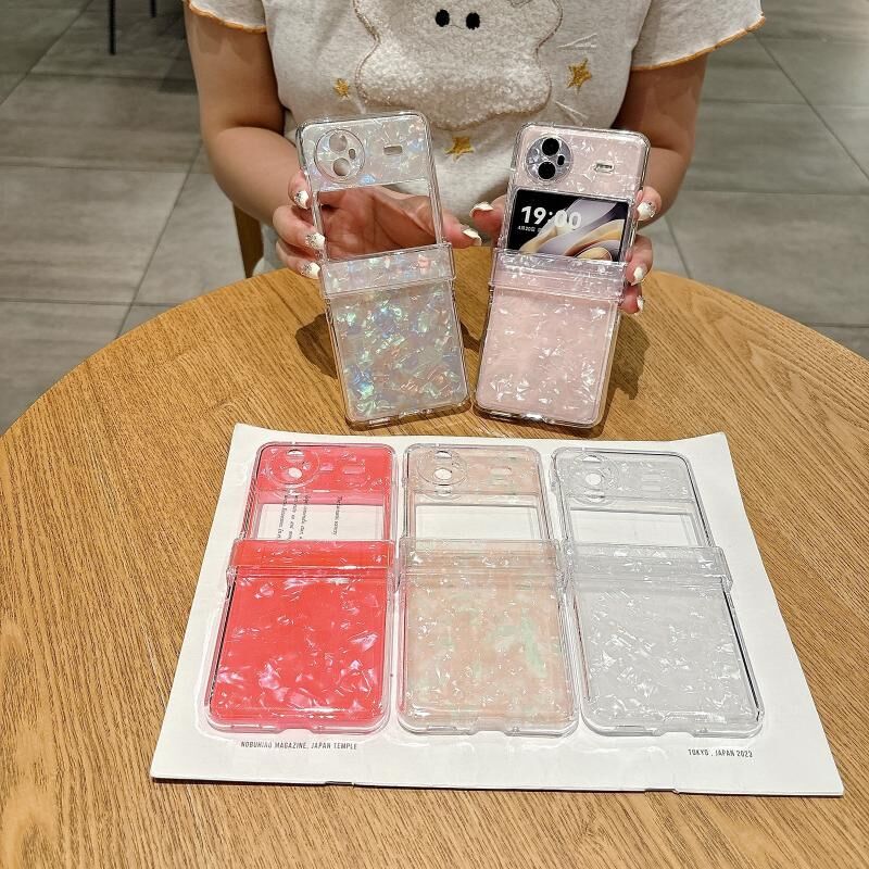 Για vivo X Flip τριών τεμαχίων Set Pearlescent Shell Υφή τηλέφωνο υπόθεση (ροζ)