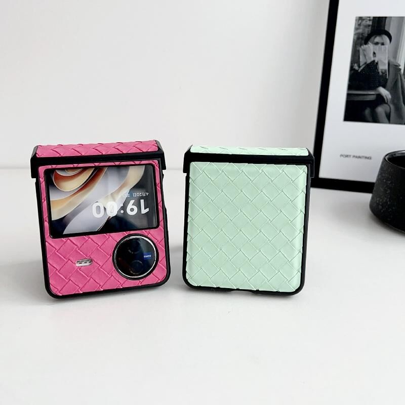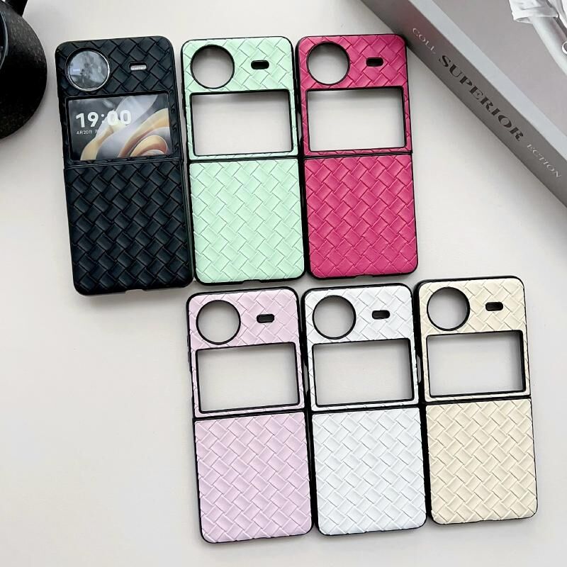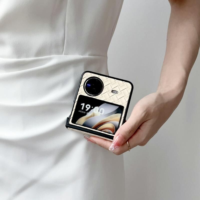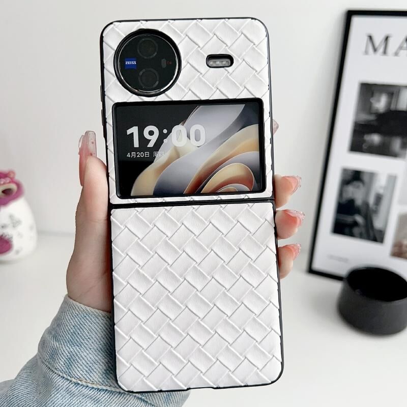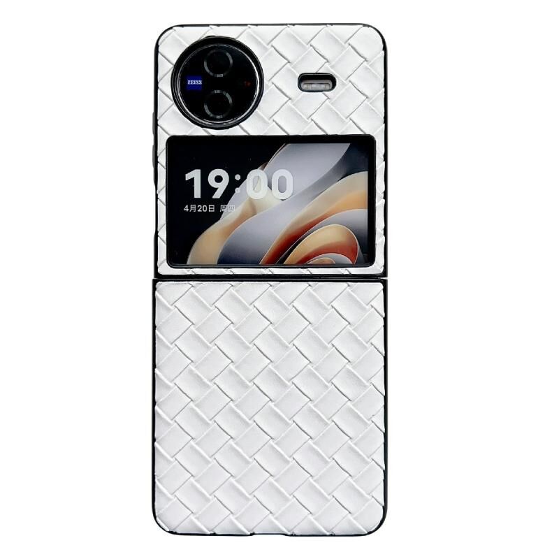 Θήκη τηλεφώνου για vivo X Flip με υφή υφαντού, αναδιπλούμενη από PU (Λευκό)