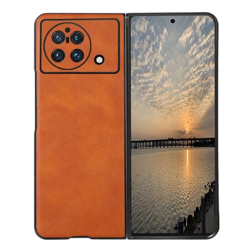Για vivo X Πτυσσόμενα ακριβή τρύπα Cowhide Υφή PU υπόθεση τηλεφώνου (καφέ)