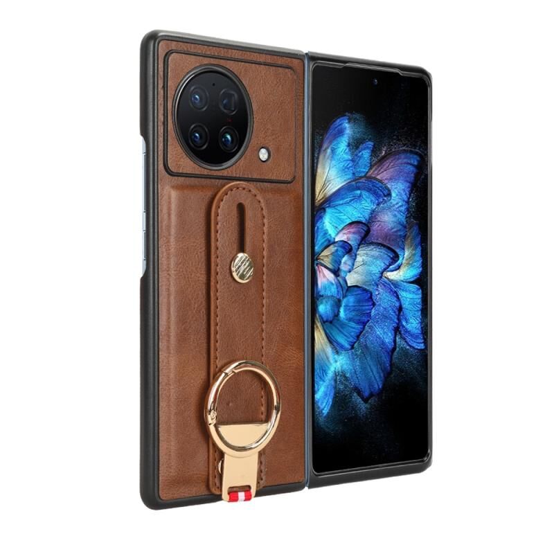 Για vivo X Διπλώστε Wristband δέρμα πίσω υπόθεση τηλεφώνου (καφέ)