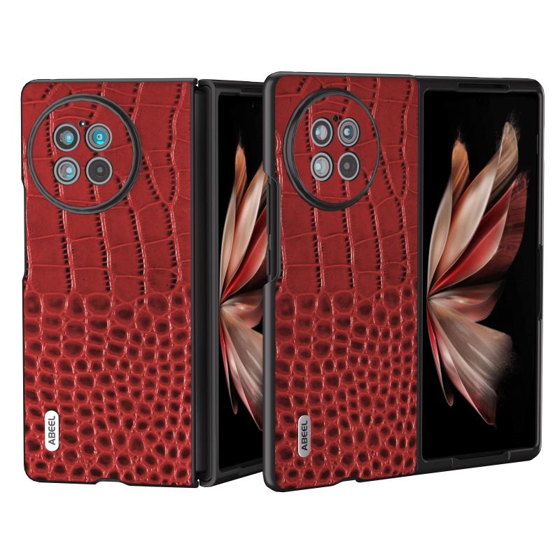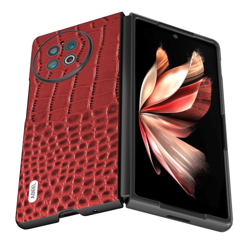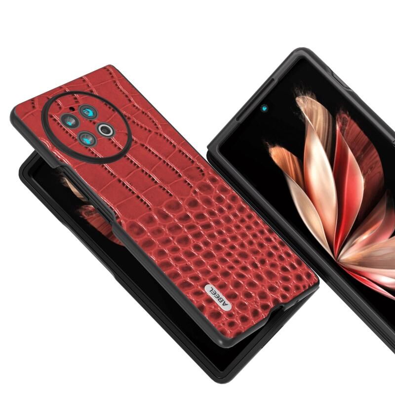 Για vivo X Fold2 ABEEL Δερμάτινη Θήκη Κροκόδειλου Μαύρο Πλαίσιο (Κόκκινο)