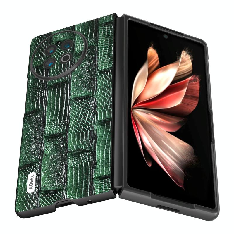 Για vivo X Fold2 ABEEL Δερμάτινη Θήκη Mahjong Μαύρο Πλαίσιο (Πράσινο)