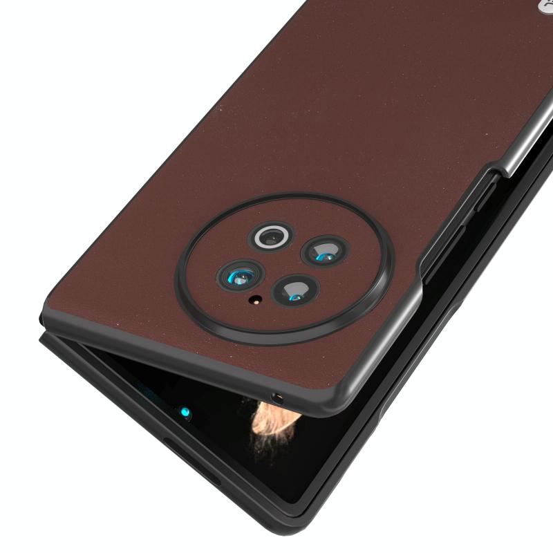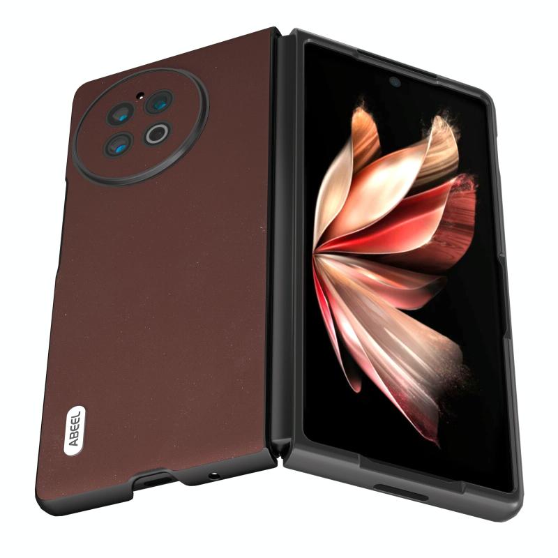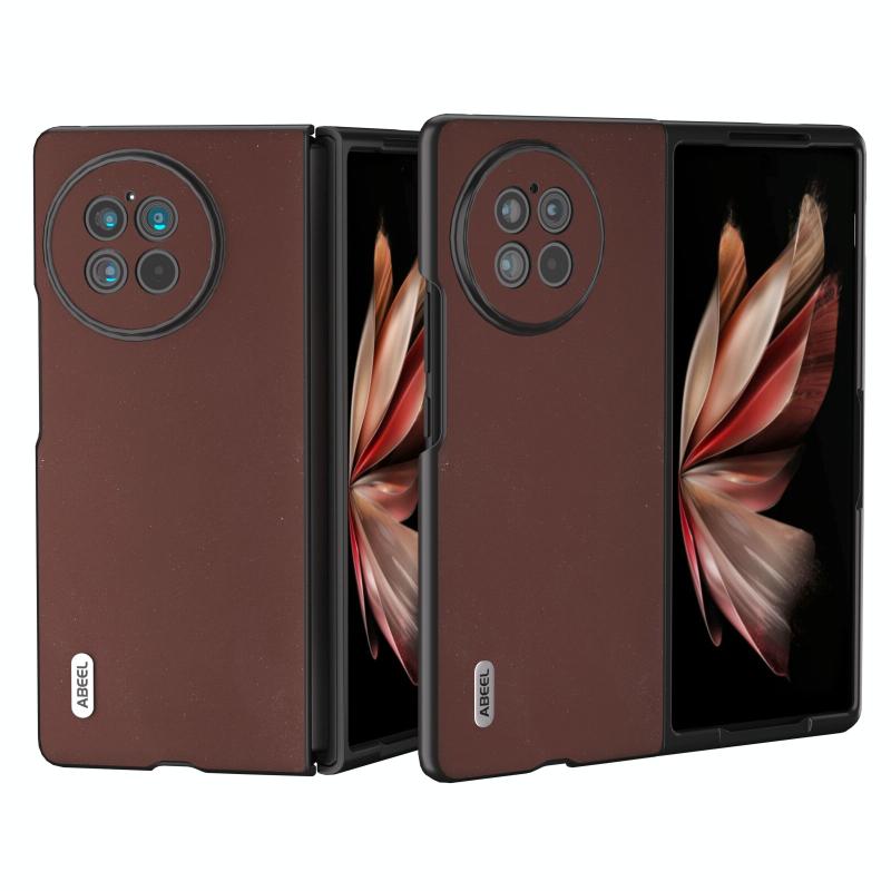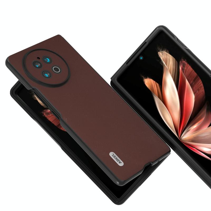 Θήκη τηλεφώνου από γνήσιο δέρμα για vivo X Fold2 ABEEL, με μεταξένια απαλή μαύρη άκρη (Καφέ)