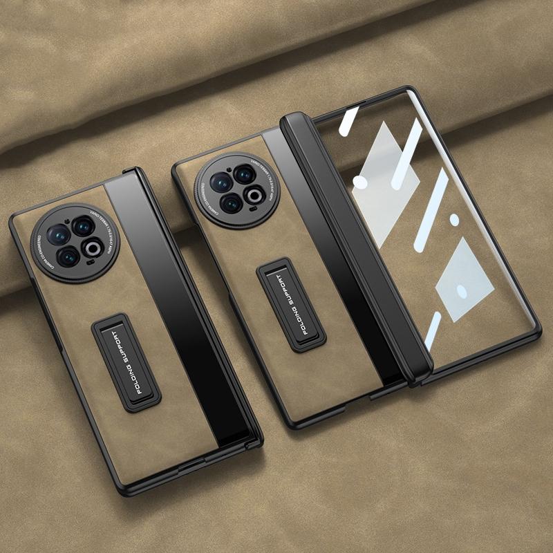 Θήκη τηλεφώνου από δέρμα με ενσωματωμένη ματ αρθρωτή βάση για vivo X Fold2 GKK (Καφέ) (GKK)