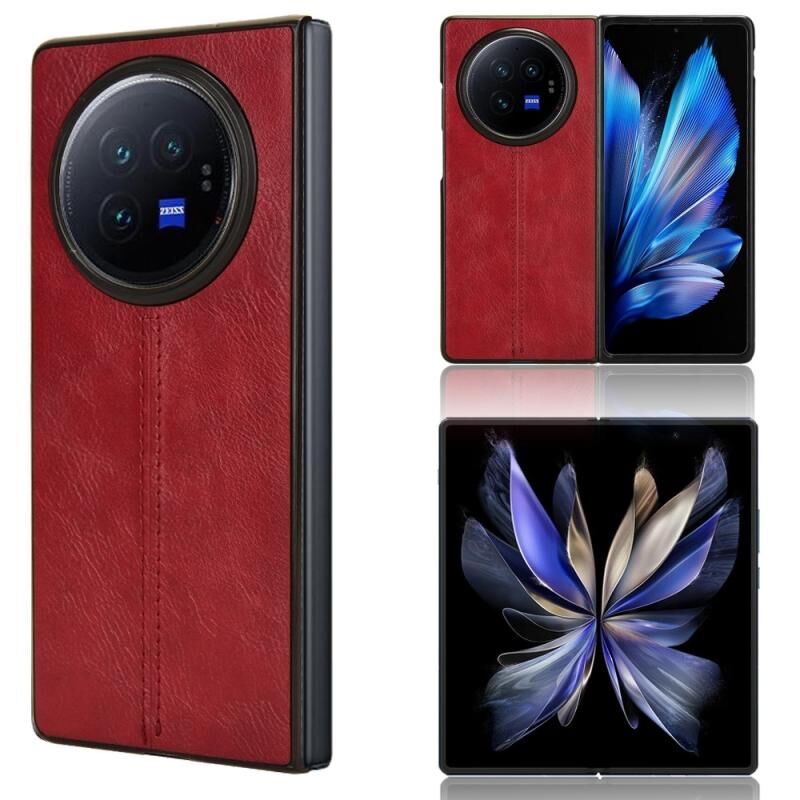 Για το vivo X Fold3 Αγελάδα μοτίβο ραπτικής πίσω κάλυψη υπόθεση τηλεφώνου (κόκκινο)