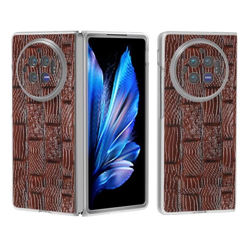 Θήκη τηλεφώνου για vivo X Fold3 με ημιδιαφανές, παγωμένο περίγραμμα και γνήσιο δέρμα με μοτίβο Mahjong (Μαύρο)