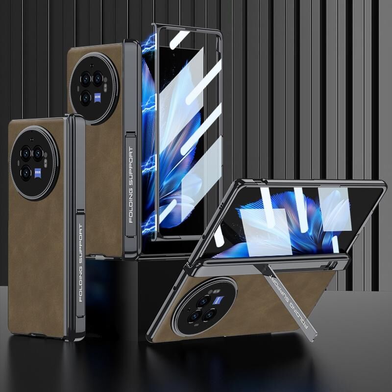 Για το vivo X Fold3 GKK Ενσωματωμένη μαγνητική πτυσσόμενη μεντεσέδα δερμάτινη θήκη τηλεφώνου με αντικραδασμική προστασία (Ματ καφέ) (GKK)