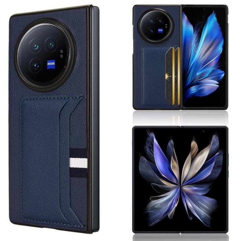 Για το vivo X Fold3 Litchi Υφή κάρτα υποδοχές πίσω κάλυμμα τηλέφωνο υπόθεση (μπλε)