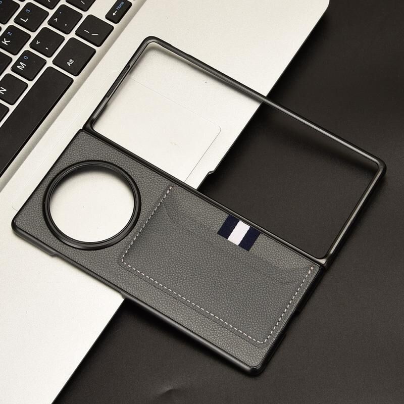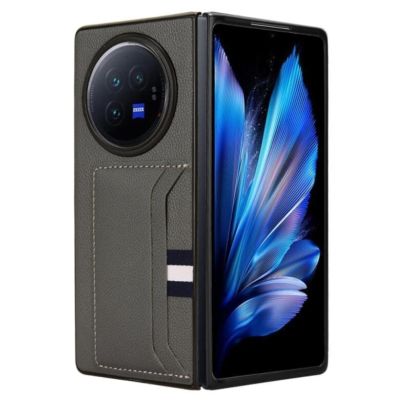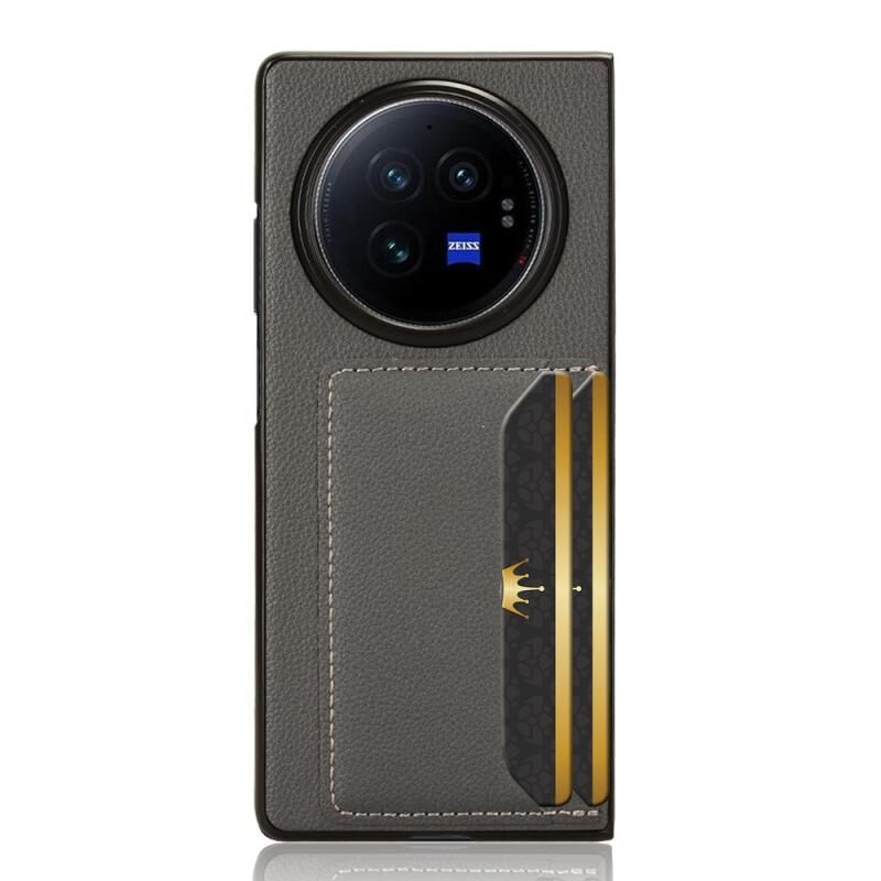 Για το vivo X Fold3 Litchi Υφή κάρτα υποδοχές πίσω κάλυμμα τηλέφωνο υπόθεση (γκρι)