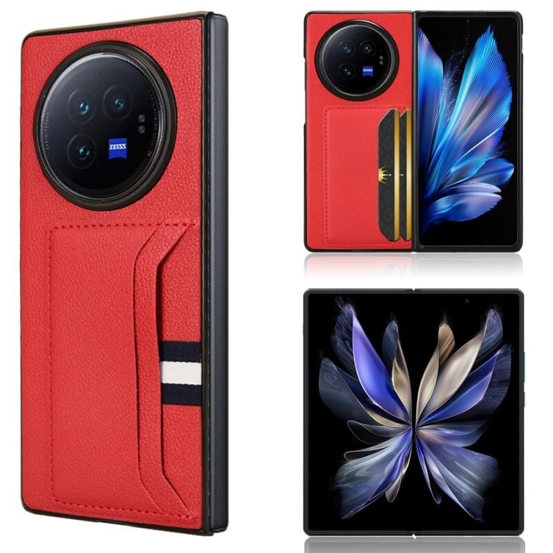 Για το vivo X Fold3 Litchi Υφή κάρτα υποδοχές πίσω κάλυμμα τηλέφωνο υπόθεση (κόκκινο)