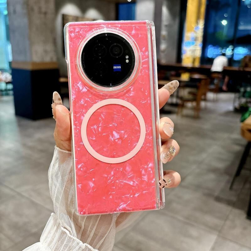 Θήκη τηλεφώνου MagSafe για vivo X Fold3 Μαγνητικός Άξονας Πέρλας Υφή (Κόκκινο)